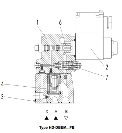 Βασικά αυτές οι βαλβίδες αποτελούνται από μια πιλοτική βαλβίδα (1) με αναλογική ηλεκτρομαγνητική βαλβίδα (2) και την κύρια βαλβίδα (3) με κύριο ένθετο καρούλι (4).